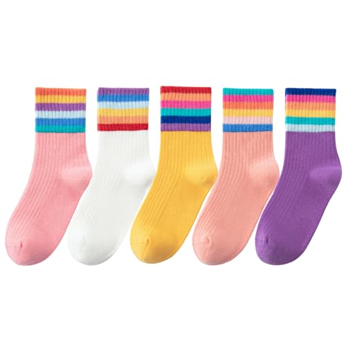 Hakugoo Kids Crew Socks - Seamless Rainbow Stripes , 5 Pairs