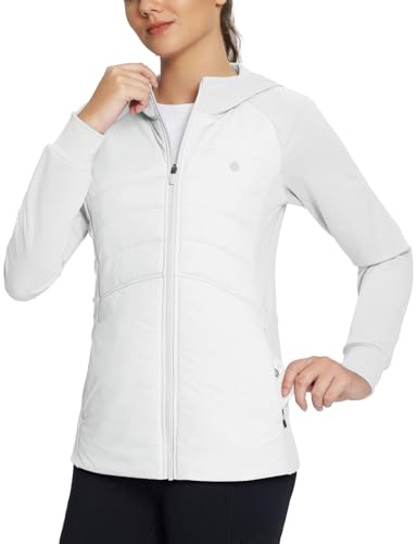 *Women's Running Winter Jacket with Hood Warm Lightweight Insulated Hybrid Jackets Puffer Zip Pockets