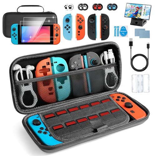 Nineshi Nintendo Switch 2 Carrying Case, Nintendo Switch 2 Accessories with Screen Protector, Holder, Joy-Con Case, Card Box, Joystick Caps, Card Box
