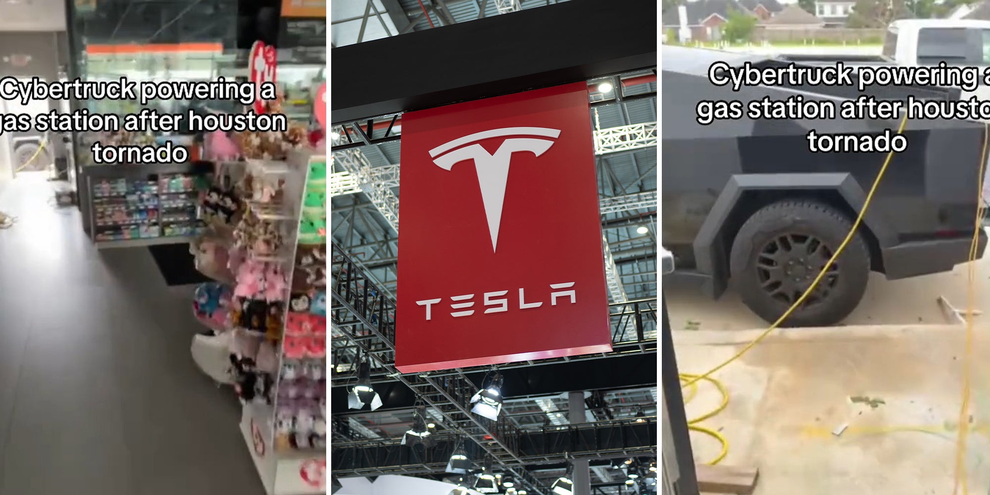 这则名为“Cybertruck 在休斯顿龙卷风后为加油站供电”的视频,由 TikTok 用户 Misbaah@misssbaaah 发布。截止周一,该视频已获得 140 万次观看。其中显示,一个加油站没有电力供应,但室外的加油泵和店内的收银机都在正常工作,接着镜头转到加油站的后门,只见一条长长的电线连接在了一辆 Cybertruck 车厢上。