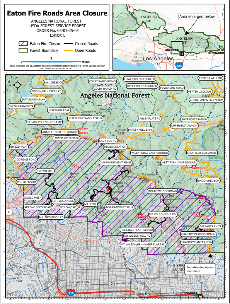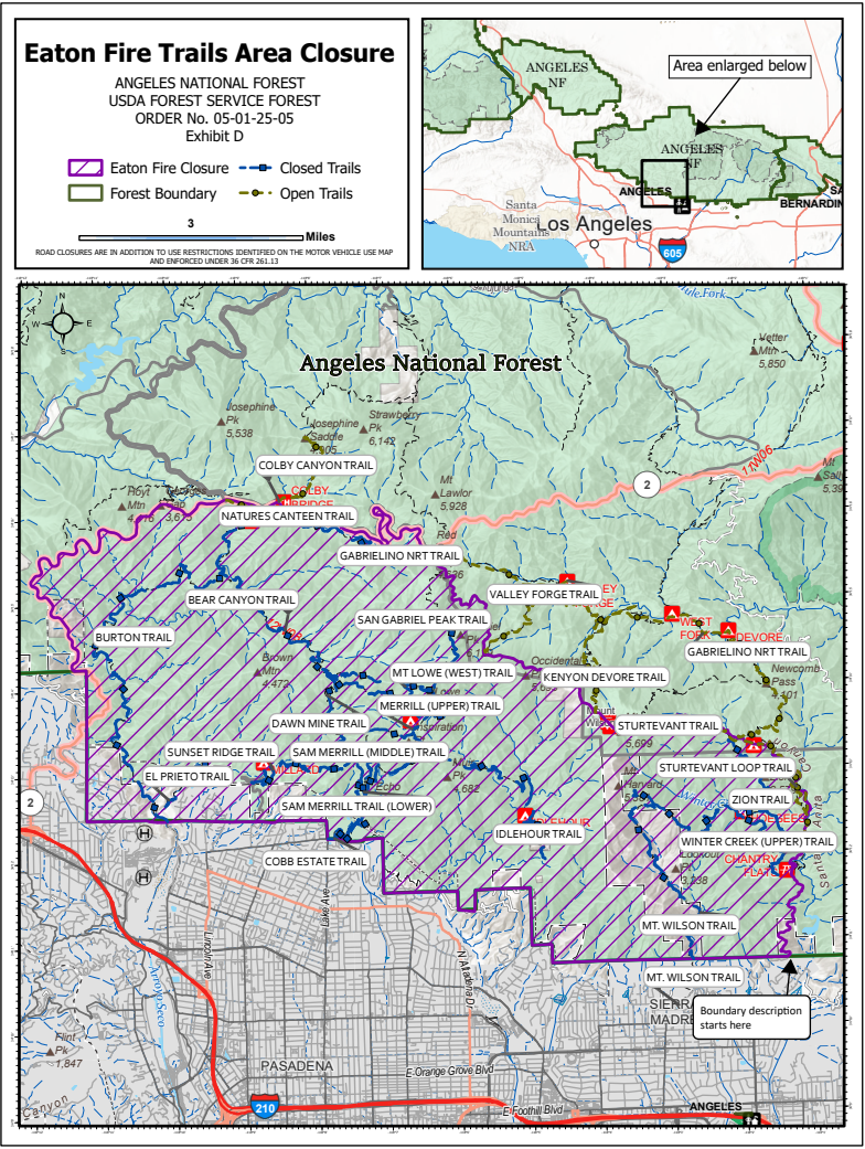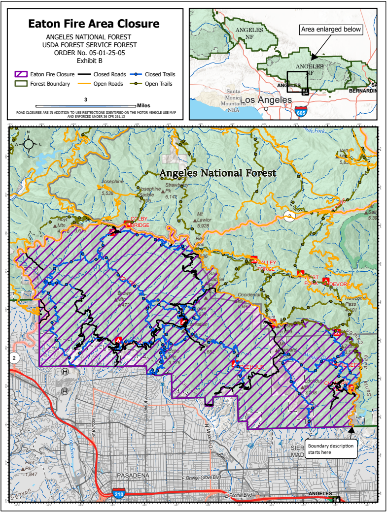 1. 进入或停留在Eaton大火封闭区的National Forest System土地(Exhibit B 所示区域)