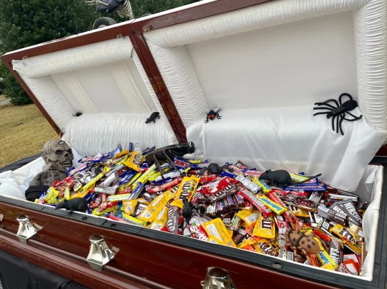 Peden说,她 15 岁的儿子超爱这些布置,看到自己家的装饰被发到TikTok上真的超有成就感。有趣的是,Lee曾是这座小镇的前镇长,他们家每年都在院子里放一个装满糖果的棺材,孩子们可以随意领取。