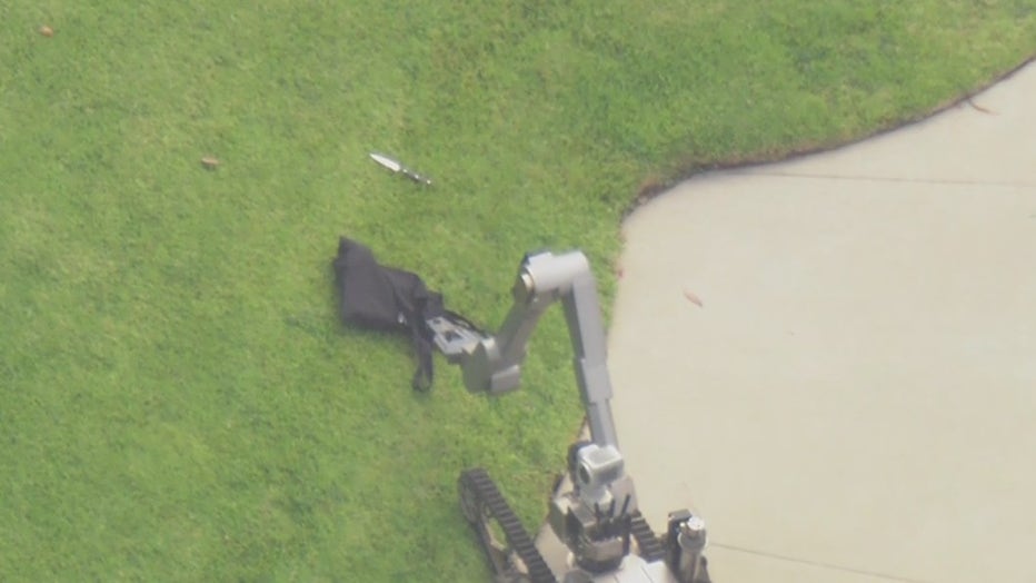 洛杉矶县警长部门的拆弹小组前往现场搜查,下午 1 点左右,警方证实确实发现了 两枚爆炸设备,但已被安全拆除。拆弹过程中,警方还出动了机器人进行排查。
