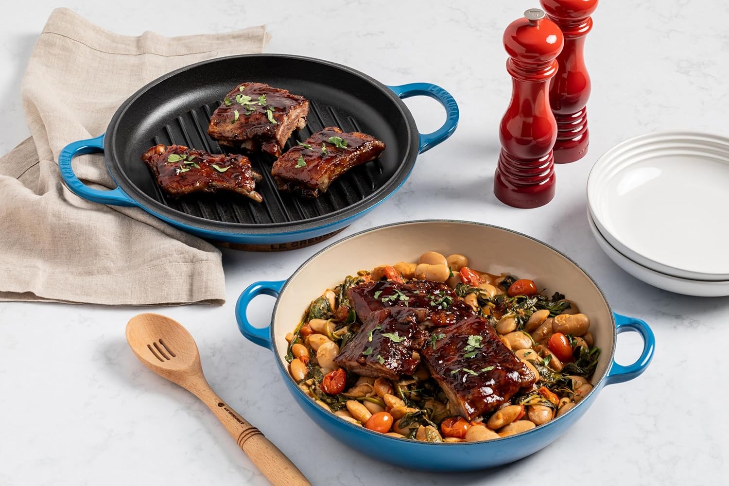 Le Creuset 这款铸铁锅具盖子可做烤盘,相当于是两个锅。开盒即可使用,无需开锅或额外养护。耐用的搪瓷涂层不易暗沉、染色、崩裂或开裂,清洁轻松省心。拥有出色的导热与保温性能,密封性良好的锅盖可循环蒸汽,将水分回流到食材中,使料理更加嫩滑多汁。人体工学环形锅耳方便提握更稳固。适用于所有炉具,并可耐受高达 500°F(约 260°C) 的烤箱温度,也可放入洗碗机清洗,使用更加省力便捷。
